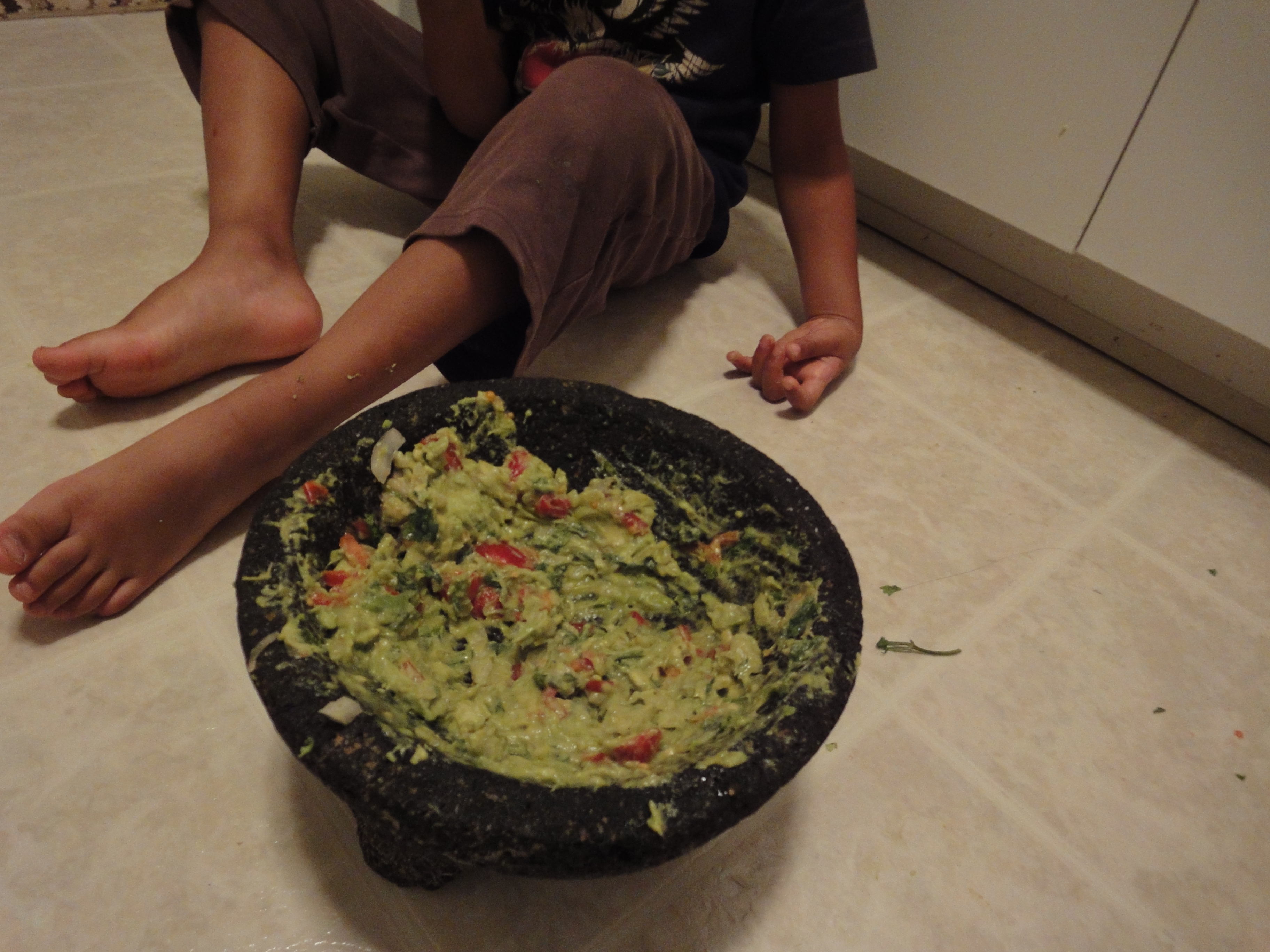 Most children love avocado, and it’s often a recommended first food for babies. Missing in the above picture is my nine-month old, who is always hovering around any food in the kitchen. He especially loves the guacamole and will lunge full-body into the stone vessel for his share of the feast.